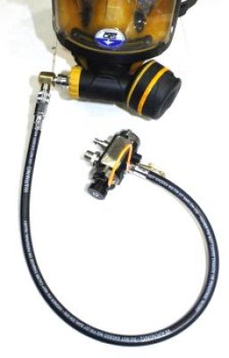 RSV-1 adapters and configurations currently available for: Interspiro AGA mask, OTS Guardian, EXOxmask, and most standard regulators with a 9/16-18 thread.