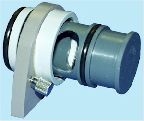 To place the SBV-1 on a OTS Guardian Mask, remove the communications port cover and press in the SBV-1 with its adapter plate.